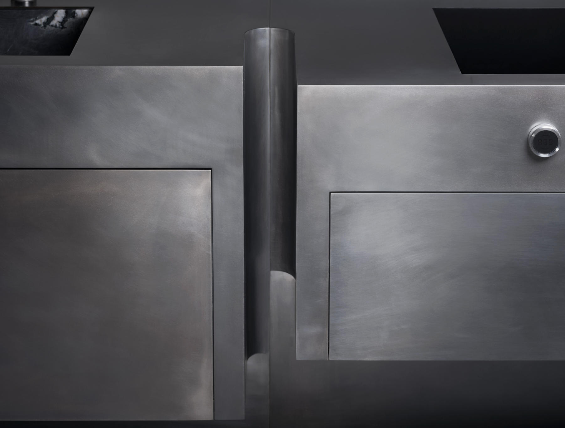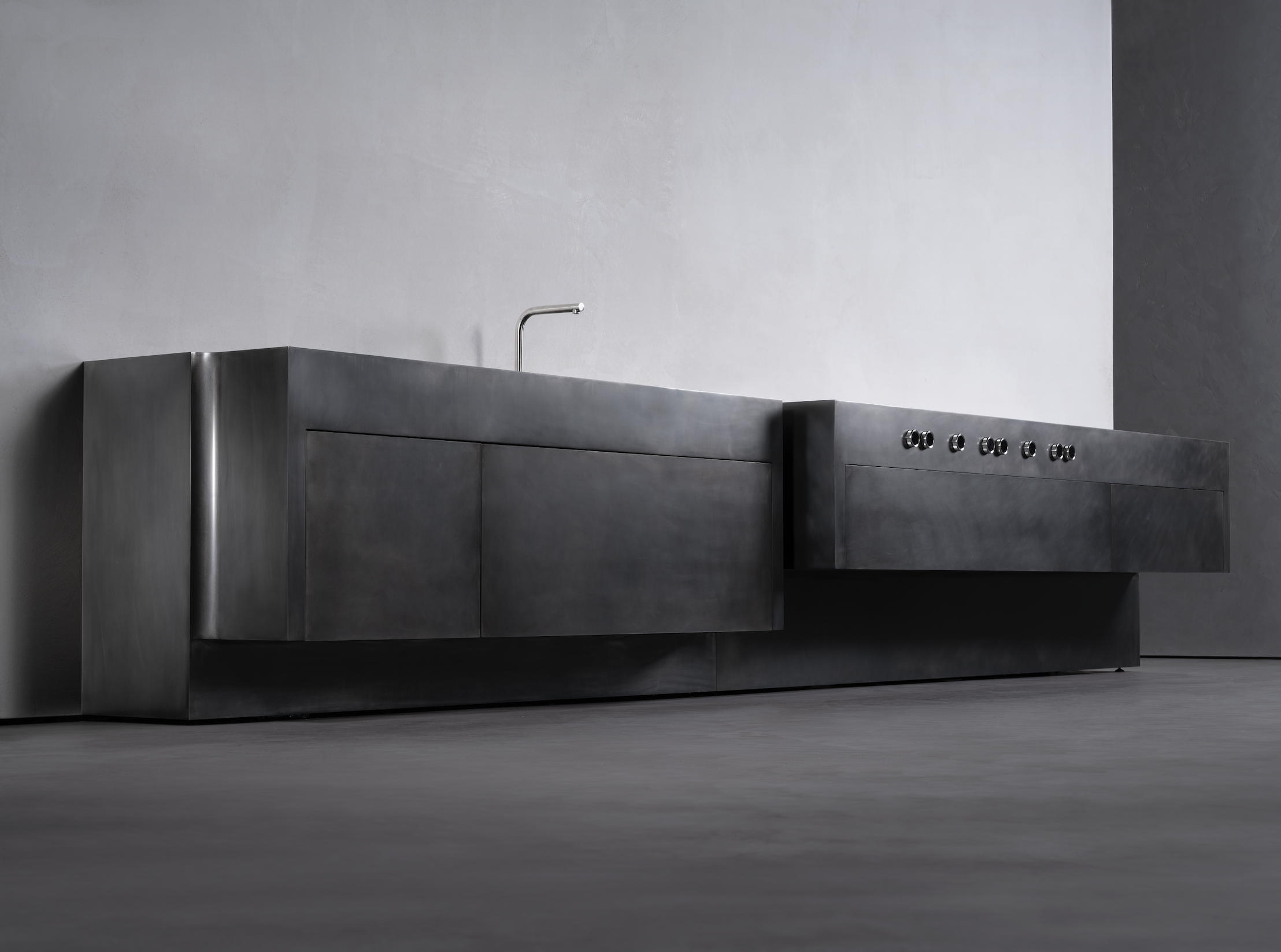 Designed by Massimo Castagna, Opera Wall is a masterclass in sculptural minimalism and precise balance. Its bold steel profile brings an unconventional edge to modern living. The sophisticated look turns the wall into a living surface, where the rigour of metal meets a fresh design that moves beyond the traditional kitchen.