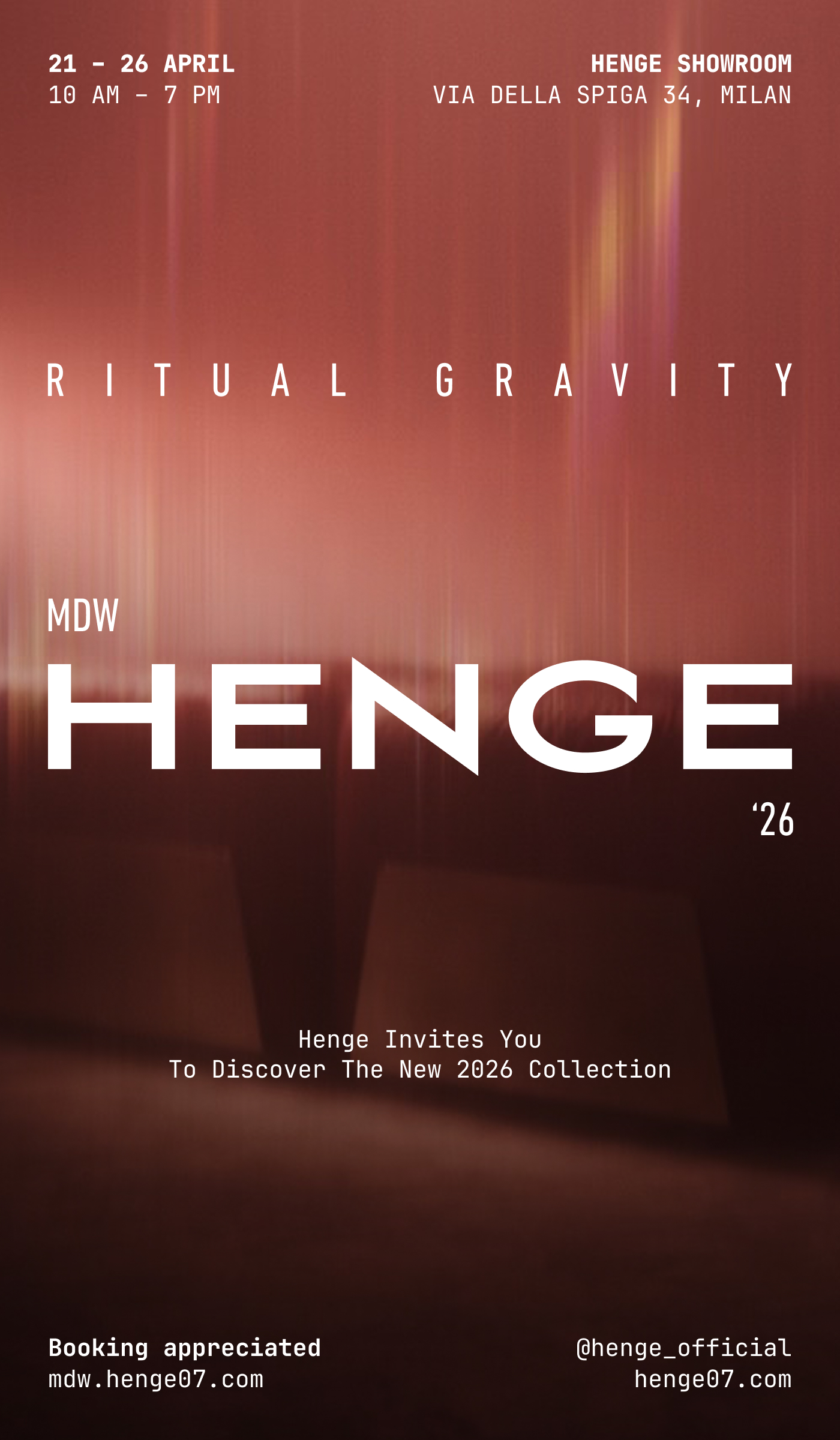 Milan, Italy - April 2026: For Milan Design Week 2026, Henge will unveil its 2026 Collection Ritual Gravity at its flagship showroom in Via della Spiga 34. The presentation highlights the brand’s evolving vision of the home, bringing together furniture, lighting and accessories within a cohesive living environment.