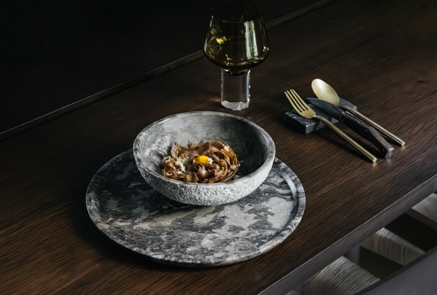 Alongside new furniture and lighting pieces, Henge will introduce its Home Collection, marking the brand’s first exploration into objects for the table and the rituals of hospitality. Designed by Ugo Cacciatori and Yabu Pushelberg, the collection includes stone plates, sand cast trays and Murano glassware, extending the material richness and sculptural sensibility of Henge furniture into smaller-scale pieces. Conceived as one-of-a-kind objects, the collection embraces the singularity of matter and the value of artisanal variation. The stone plates, in particular, are unique pieces, shaped by natural character and craftsmanship so that no two are ever the same.